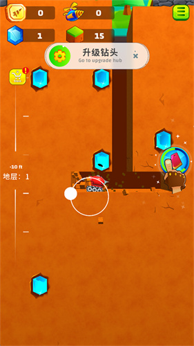 2、升级您的钻头零件(轮子、油箱、钻头尺寸...)以挖掘得更深!