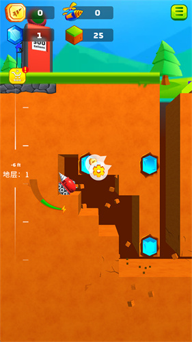 地面挖掘机内置菜单破解版是一款卡通风格的地面挖掘游戏,结合有趣的背景音乐,给玩家带了不一样的游戏体验。游戏中玩家要拖动自己的红色挖掘机,从地面向地底深处进行挖掘,在挖掘的过程中,可能会遇到宝石矿,玩家可以收集换取资金,升级自己的挖掘机设备。挖掘机的钻头变热时,要停下休息不然挖掘速度会变慢,玩家还可以雇佣机器人帮助自己进行挖掘。