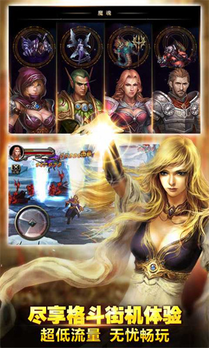 2、经典的街机横版格斗对战,滑动摇杆控制角色躲避敌人攻击,寻找合适的时机进行反击才能完成副本挑战。