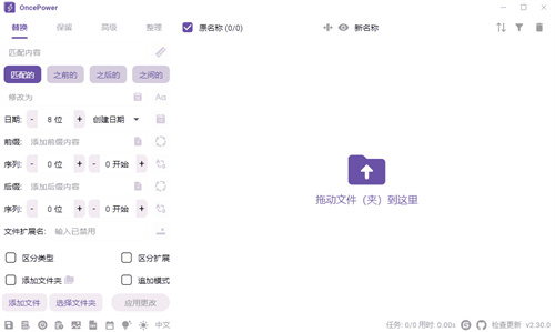 3、OncePower的核心功能在于其强大的批量重命名能力。它支持多种命名方式,包括但不限于替换、修改匹配内容、匹配长度、以日期命名以及前缀后缀添加等,让文件名更加规范易记。用户无需逐一手动修改文件名,只需简单设置规则,即可一键完成批量重命名,极大地提高了工作效率。