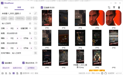 3、OncePower支持文件名字修改,一次可以修改几百个文件